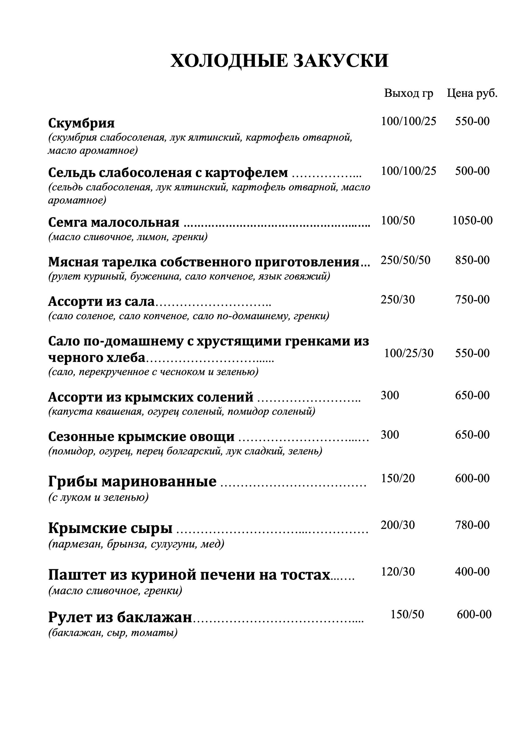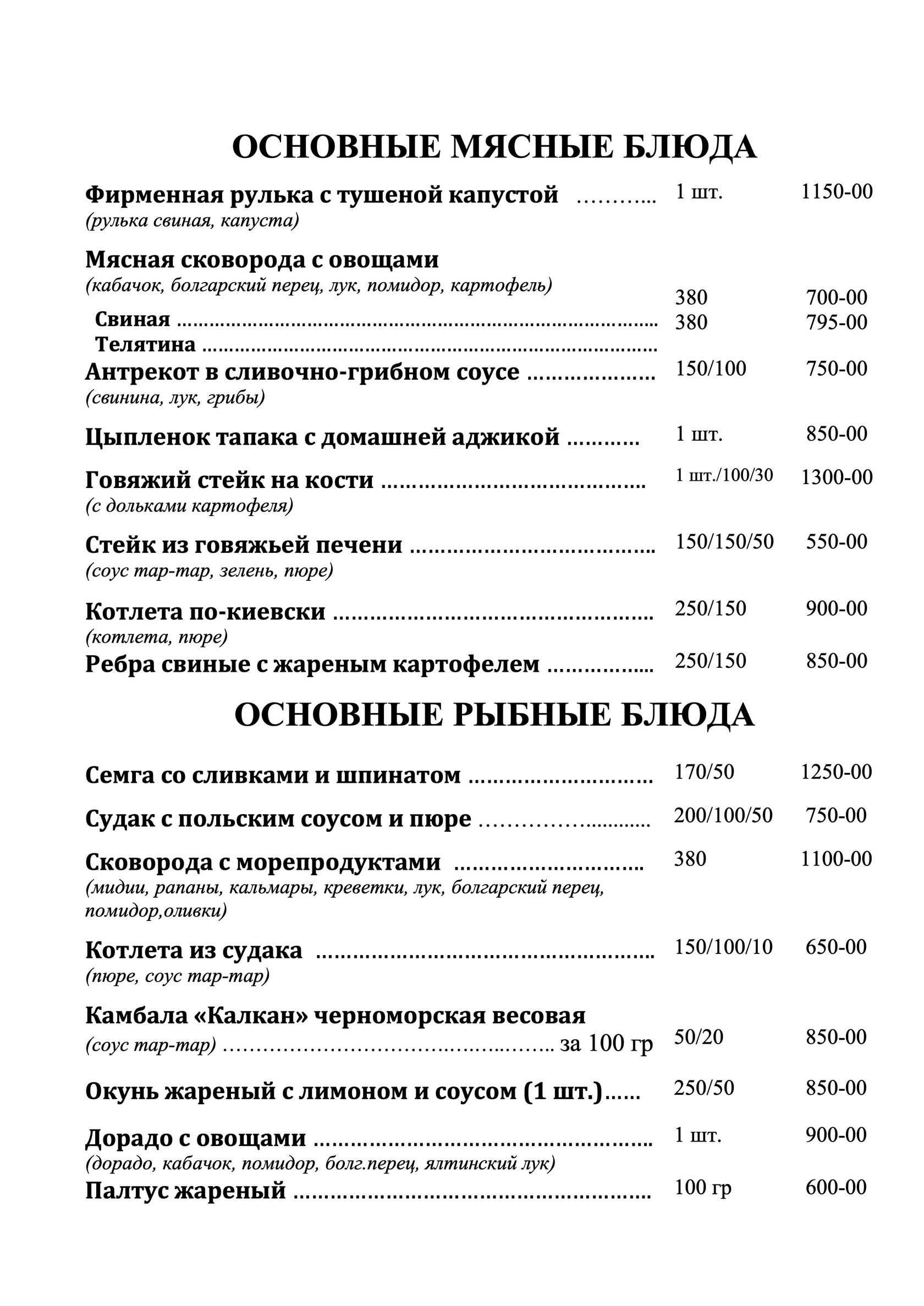 - меню от шефа по индивидуальным пожеланиям